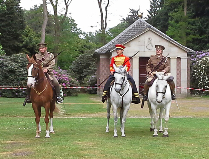 Sussex Yeomanry Mounted Skill-at-Arms Group was fortunate to receive (via the group Crown & Empire) an invitation to take part in the fourth Living History weekend event at Museum Huis Doorn. We packed our horses, equipment and ourselves into two horse boxes and made the long journey via Dover, Calais and the dreaded ring road round Antwerp to the Netherlands. Our arena was beside the castle and in front of the Kaiser’s mausoleum. The horse boxes were parked nearby. It was a strange feeling to be cleaning and polishing equipment and riding less than 100 yards from the remains of a man who had at one time been so influential. It brought to mind the poem by Shelley – Ozymandias.