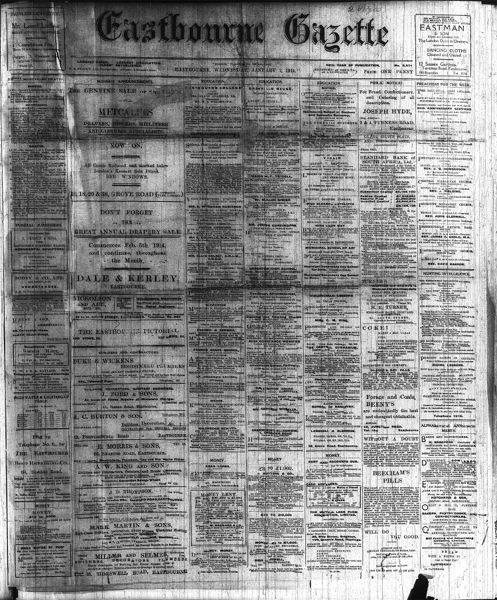 The Eastbourne Gazette was first published in 1859. A weekly paper, published every Wednesday and it is still in print today. We have digitised every edition of this newspaper from 7 January 1914 to 25 December 1918.